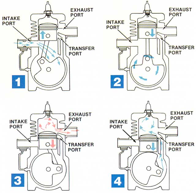 Two-cycle motors deliver one power impulse for each revolution of the crankshaft. |